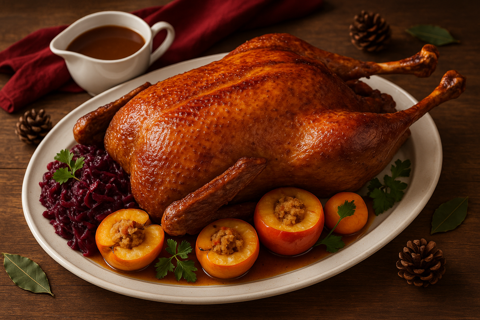 Knusprig gebraten, zart im Fleisch und begleitet von klassischen Beilagen – so beginnt bei uns die Gänsezeit.